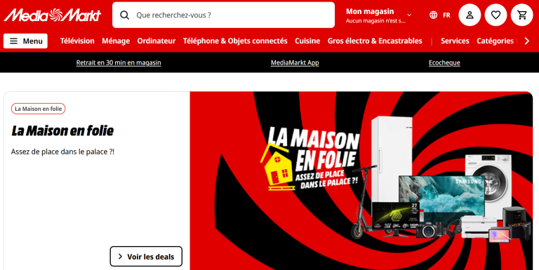 - MediaMarkt : 10 € de réduction dès 30 € d’achat + livraison gratuite.